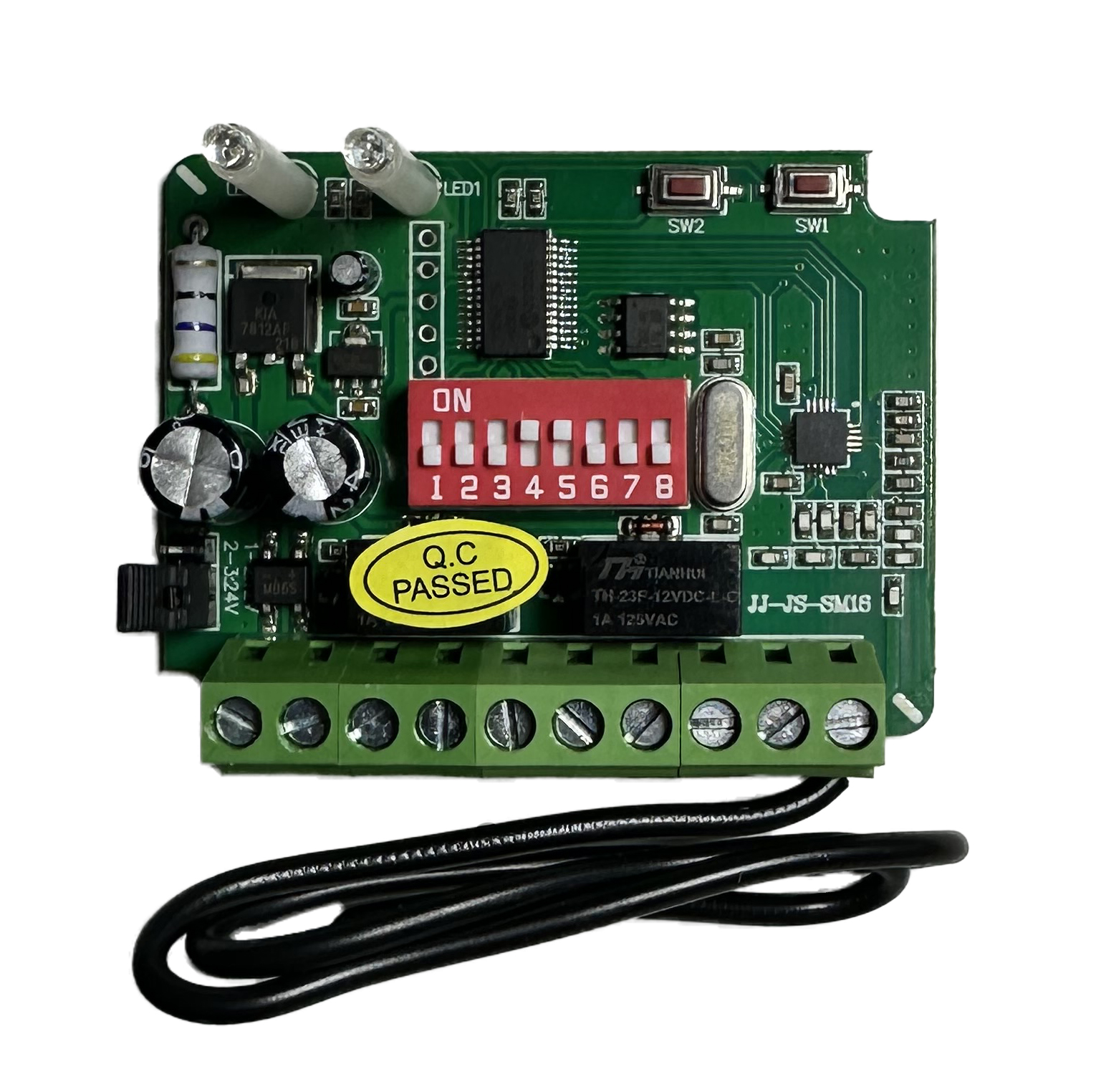 Радиоприемник для ворот и шлагбаумов FURNITEH SM18DP универсальный — компактное и функциональное устройство для дистанционного управления воротами, шлагбаумами, системами освещения и другими механизмами. Работает в широком диапазоне частот 300–868 МГц, что обеспечивает совместимость с большинством пультов дистанционного управления. Оснащён 3 каналами с возможностью использования 1–2 каналов по необходимости — это позволяет гибко настраивать систему: например, одним каналом можно управлять воротами, а другим — шлагбаумом или освещением. Приёмник поддерживает статический и динамический код. Радиоприемник FURNITEH SM18DP совместим практически с любым производителем пультов дистанционного управления. Переключая дип-переключатели можно настроить приёмник на любую частоту и любую кодировку.
